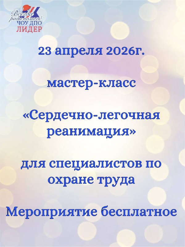 23.04.2026 с 13.00 по адресу пр. Губкина, д.1/5, оф. 7 (Учебный полигон) приглашаем на мастер-класс "Сердечно-легочная реанимация" для специалистов по охране труда