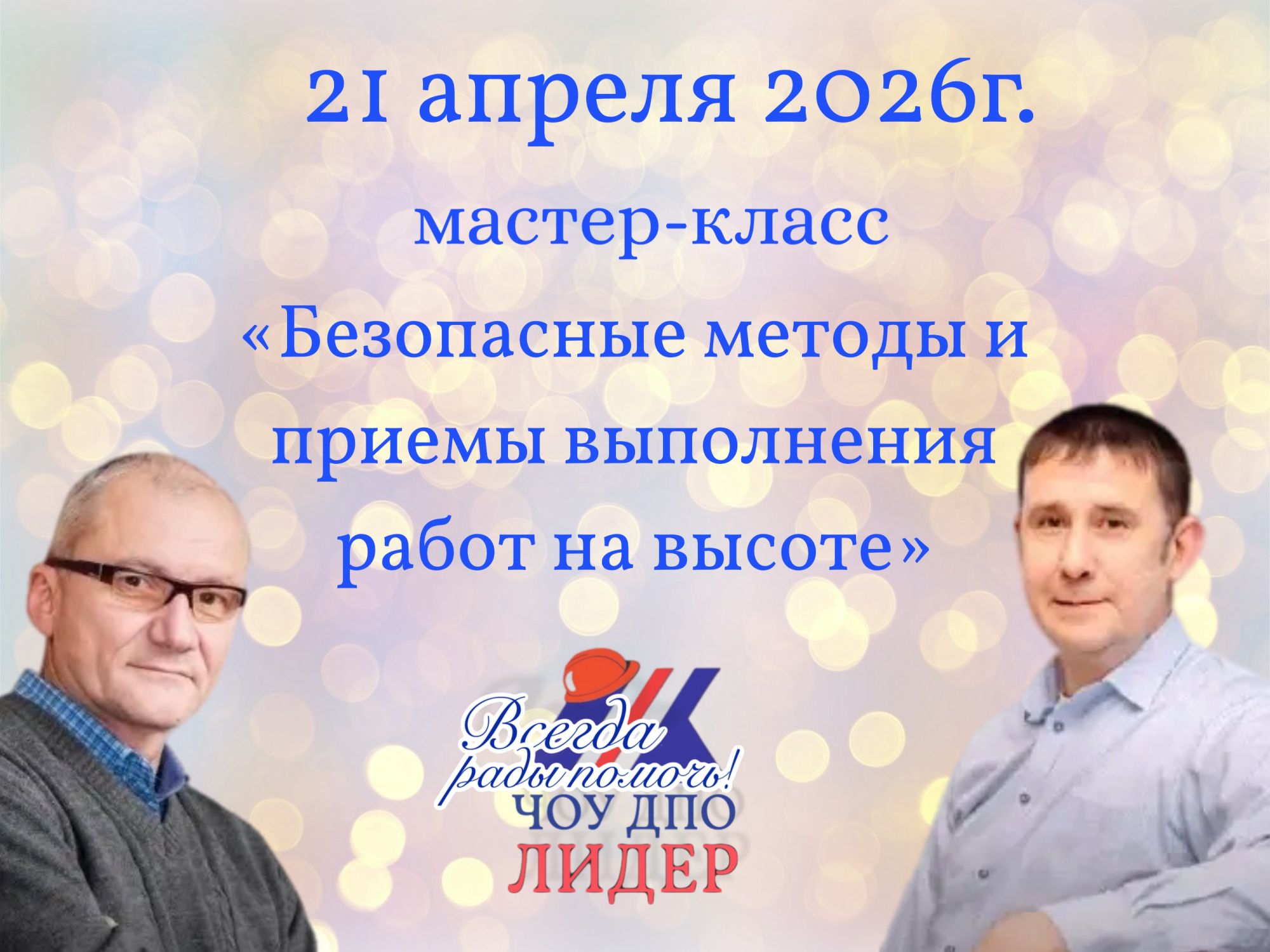 21.04.2026 с 13.00 по адресу пр. Губкина, д.1/5, оф. 7 (Учебный полигон) приглашаем на мастер-класс "Безопасные методы и приемы выполнения работ на высоте"